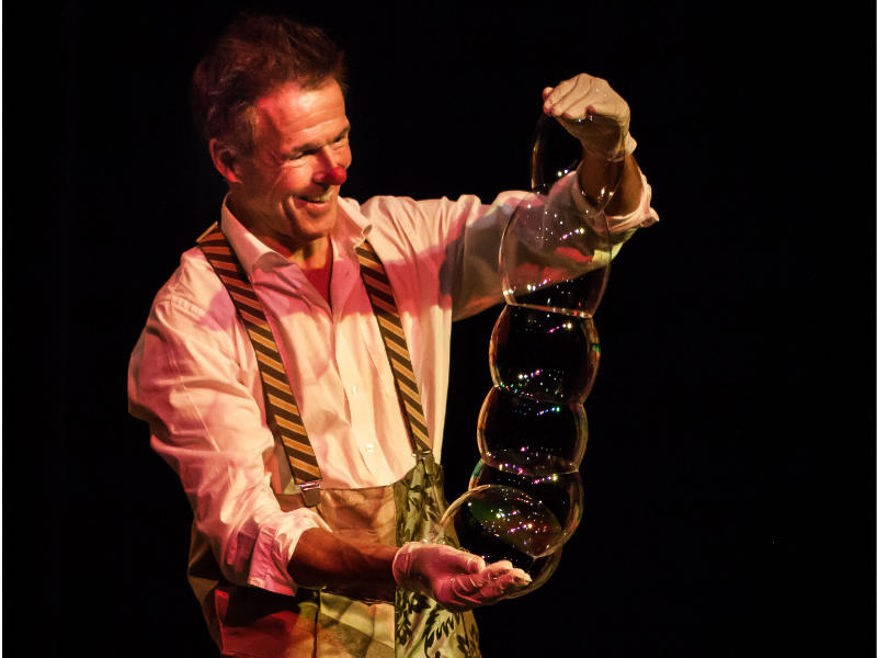 Hilarisch muzikaal clownstheater waarin Arno Huibers kinderen en volwassenen laat genieten van clowneske pareltjes.