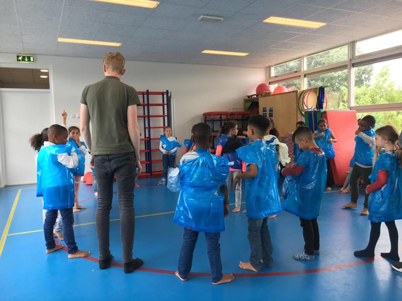 Het thema waaraan we werken stem ik vooraf met de leerkracht af. Het thema kan iets zijn dat speelt in de klas, waaraan wordt gewerkt in de lessen, of waar de klas op social vlak moeite mee heeft of juist in floreert.