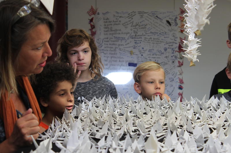 In het kader van burgerschap, 80 jaar na de WO II en de oorlogsdreigingen in de wereld, vertel ik graag het mooie, zielige, maar waargebeurde verhaal van het Japanse meisje Sadako Sasaki en leer ik daarna de klas kraanvogels vouwen.