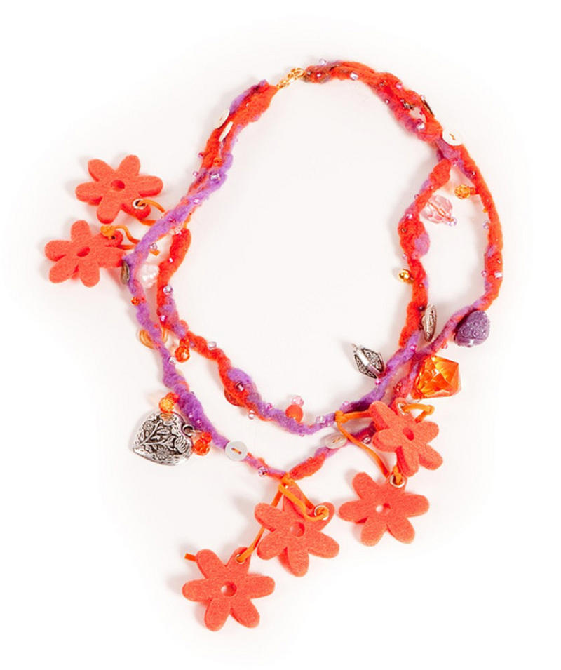 Fleurt lekker op! gevlochten, gewikkeld, gevilt. Maak een vrolijk of stemmig sieraad, met of zonder glimmertjes. ketting, armband, of een kraag als je meer tijd hebt. Mixed media, spelen, creativiteitsbevorderend.